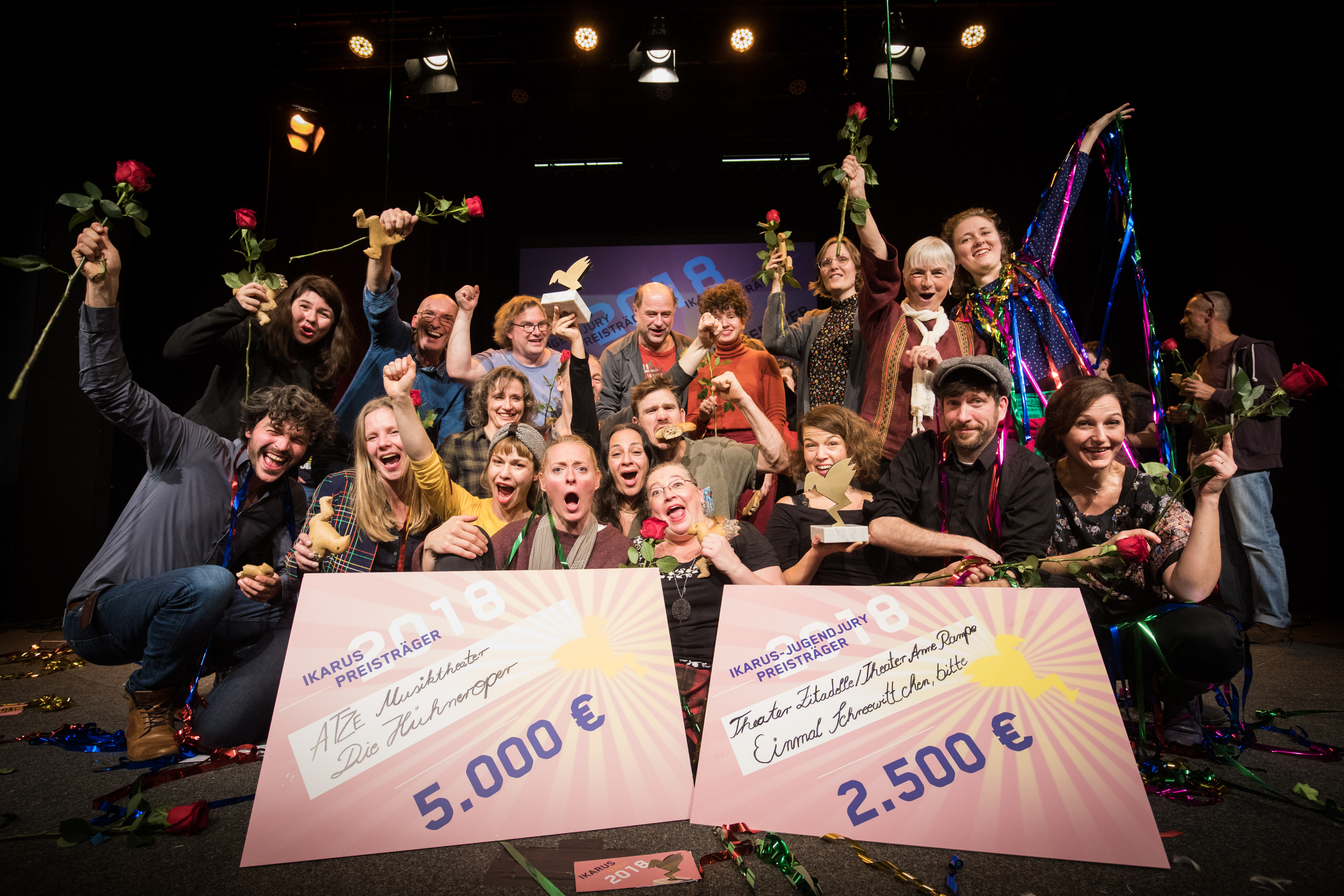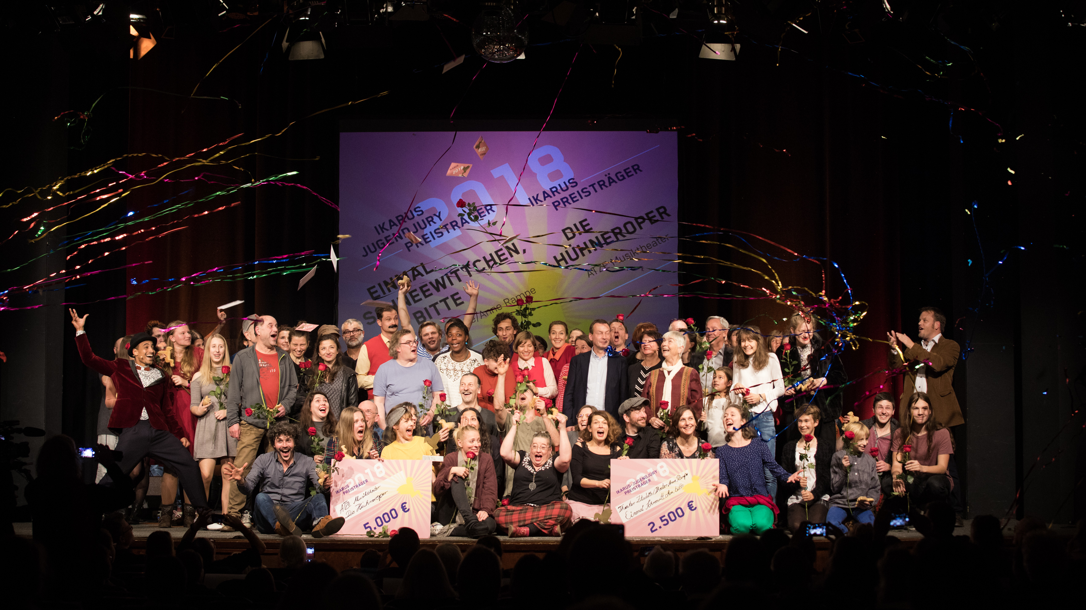 Vor einem begeisterten Publikum wurde am 7. November 2018 im Kabarett-Theater Die Wühlmäuse der IKARUS – Auszeichnung für herausragende Berliner Theaterinszenierungen für Kinder und Jugendliche verliehen. Am Abend zeigten alle acht Nominierten Ausschnitte aus ihren Stücken, bevor die Jurys die Preisträger bekannt gaben und die Preise durch die Staatsekretärin für Jugend und Familie, Sigrid Klebba, den Staatssekretär für Kultur, Dr. Torsten Wöhlert, und den JugendKulturService verliehen wurden. Raphael Hillebrand und die 4xSample Beatboxcrew führten groovend durch den Abend.